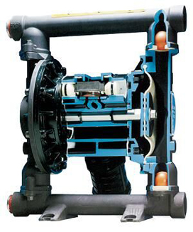 氣動雙隔膜泵采用壓縮空氣、氮氣或天然氣作為動力。主定向(氣動)控制閥將壓縮空氣分配至氣體腔室,向隔膜的內(nèi)表面上施加均勻壓力。同時排出的氣體從泵另一側(cè)后方通過氣閥組件導(dǎo)向端口排出。